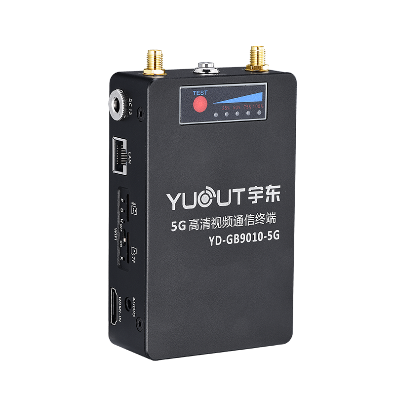 YD-GB9010-5G設備基于先進的 H.265 視頻編碼技術和 5G 無線信道捆綁傳輸技術開發的新一代產品。支持支持 5G、4G 網絡模式,采用 H.265(HEVC)超低碼率,FEC 前向糾錯技術,獨有的 UDP 快速冗余容錯,PID 控制的自適應帶寬編碼和傳輸, 1M 輕松傳輸送 1080P 視頻。